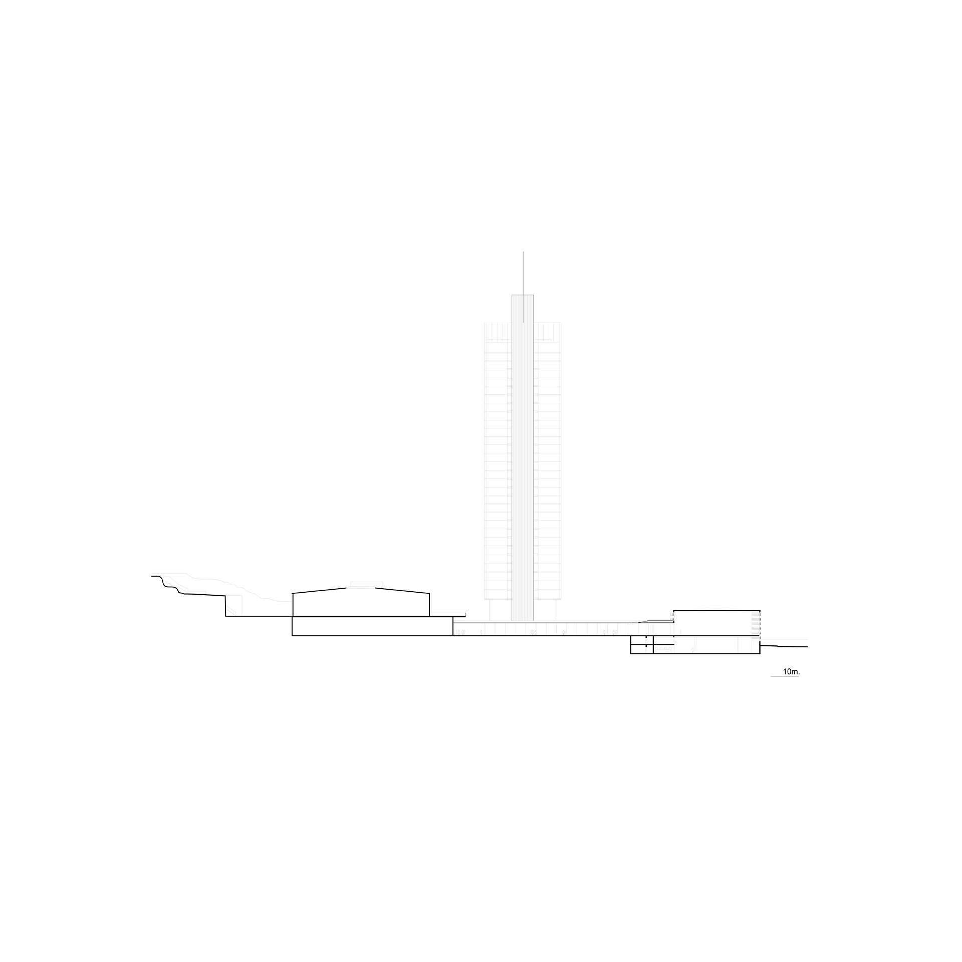 Le projet prévoyait l’agrandissement du Palais de Beaulieu, le centre de congrès lausannois. Sa localisation privilégiée et le programme imposé – hôtels, bureaux et centre commercial - ont conduit à proposer d’ériger une tour libérant ainsi le rez-de-chaussée et permettant de développer et d’agrandir les espaces publics existants. D’autre part, les pavillons existants du centre étaient réaménagés en privilégiant une flexibilité d’usage. L’accès au site à travers une grande marquise qui abrite toutes les fonctions publiques était projetée comme une zone de passage animée par la circulation des visiteurs entre l’espace urbain et le jardin/parc intérieur.