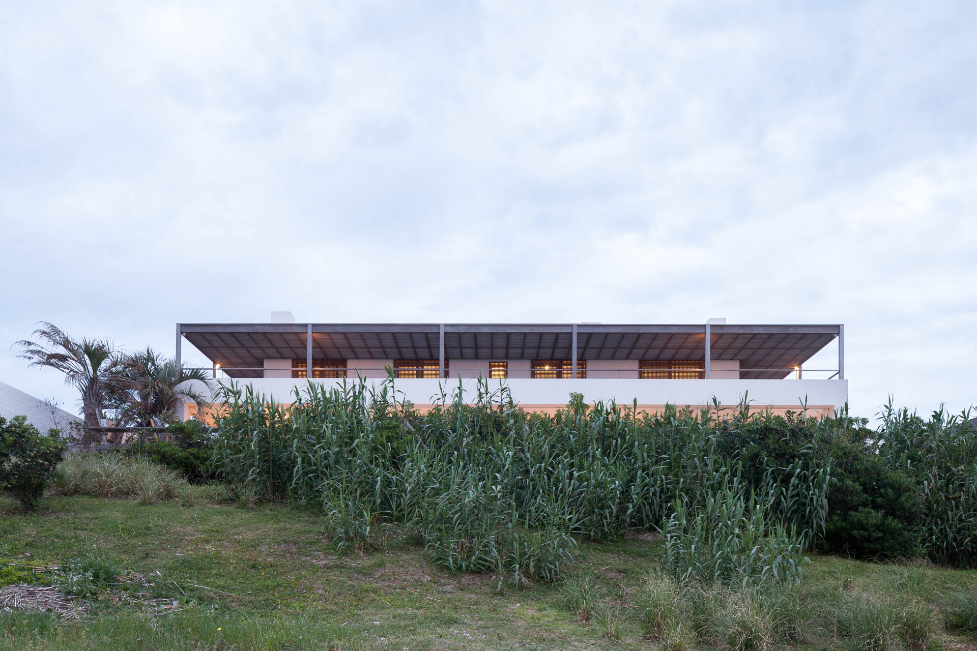 La adición de un pabellón moderno se integra a través de una gran losa que se extiende en forma de galerías y terrazas. Este elemento de unión estructural sintetiza la expresión de la nueva intervención en el conjunto, donde las cubiertas de tejas anaranjadas, las pérgolas y postigos de madera, y demás elementos se vinculan mediante esta pieza lineal, pura y blanca. Los bordes abiertos a las vistas y la ventilación, y la proyección de sombras definen tanto las transiciones entre construcciones nuevas y existentes como una arquitectura de enlace entre exteriores e interiores para darle forma a un modo singular de habitar junto al mar.