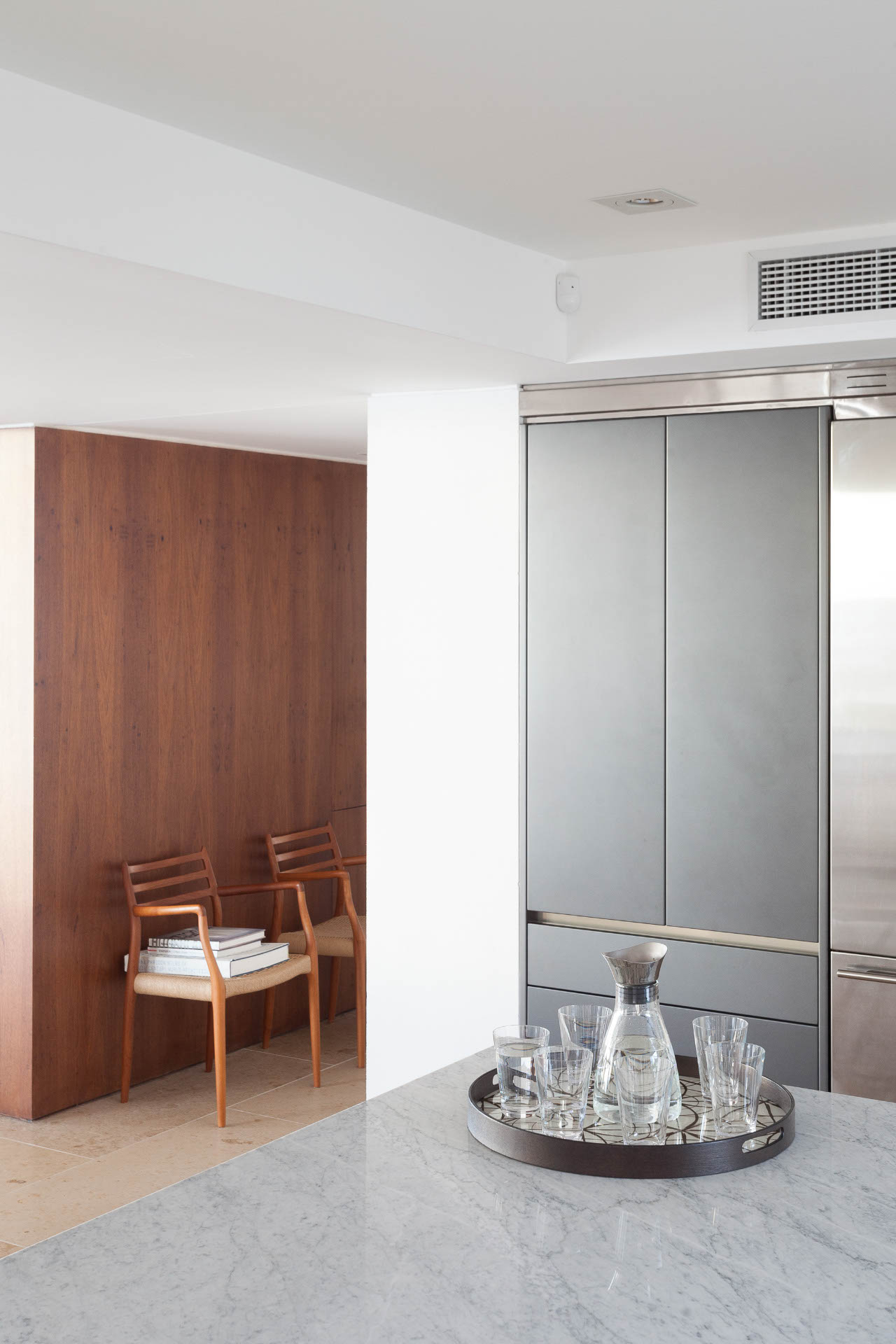 El límite interior-exterior se regula con la apertura total de las carpinterías, generando grandes espacios de uso en verano, cuando la casa es ocupada para fiestas y vacaciones. Los vínculos desde la playa hacia la pileta, terrazas, galerías y áreas de estar, y seguidamente hacia las áreas de dormitorios en planta alta se conciben como transiciones graduales que definen formas muy diferenciadas de privacidad, pero que al mismo tiempo van recuperando en cada instancia un modo de asociarse con el paisaje a través de vistas y expansiones semicubiertas.