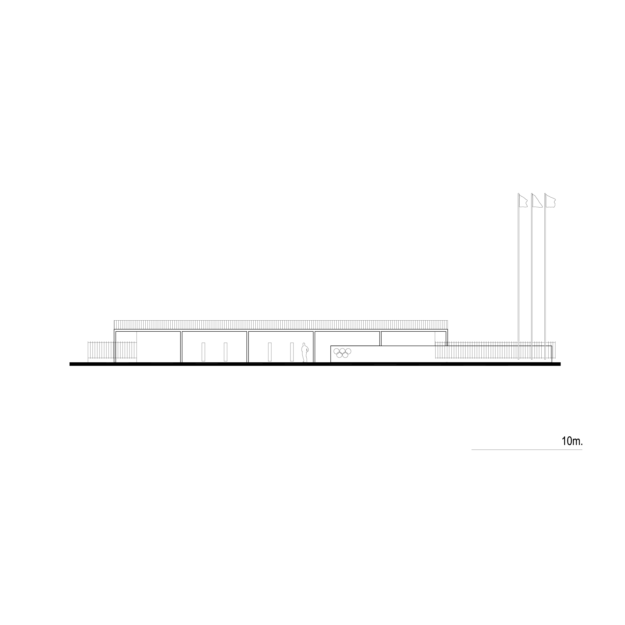 The pilot project for the IOC Olympic Youth Development Centre is located in Lusaka, Zambia, in the area between the old Independence Stadium and the new FIFA / FAZ (Football Association of Zambia) Site. This is located on the northern outskirts of the city of Lusaka, east of the Chingwere Cemetery. The Olympic Youth Development Centre includes outdoor sports fields (football, track and field, basketball / tennis / handball, hockey), an indoor multi-purpose sports venue (which can house handball, volleyball and basketball games, and can be split into 3 smaller areas for practice sessions), a Boxing Hall, and a number of educational support spaces (classrooms, library / internet room), accommodations, administrative offices, and general support spaces such as locker rooms, kitchen, storage rooms, etc. The main buildings are centrally located and arranged around an outdoor plaza, which can function as an extension to the multi-purpose hall as well as the dining area. All buildings (except for the Multi-Purpose and Boxing Halls) are designed as brick volumes placed within a larger steel structure made out of structural steel portal frames. In the case of both the Multi-Purpose and the Boxing Halls, their enclosures are flush with the structure (so that the structure itself defines the enclosed volume). A water tank is located along the main entrance pathway elevated within a steel shell in the shape of an Olympic torch, reinforcing the center’s identity as part of the Olympic community.