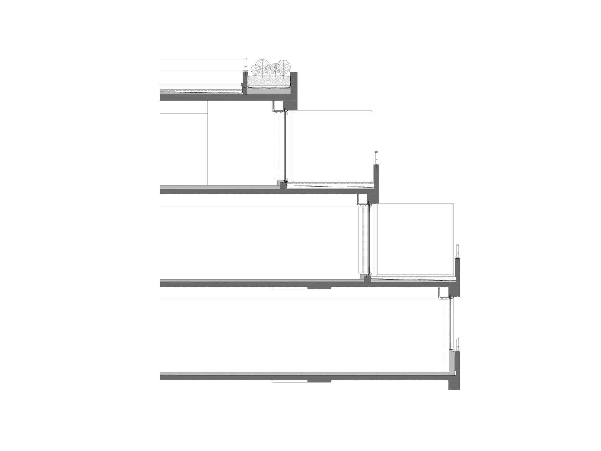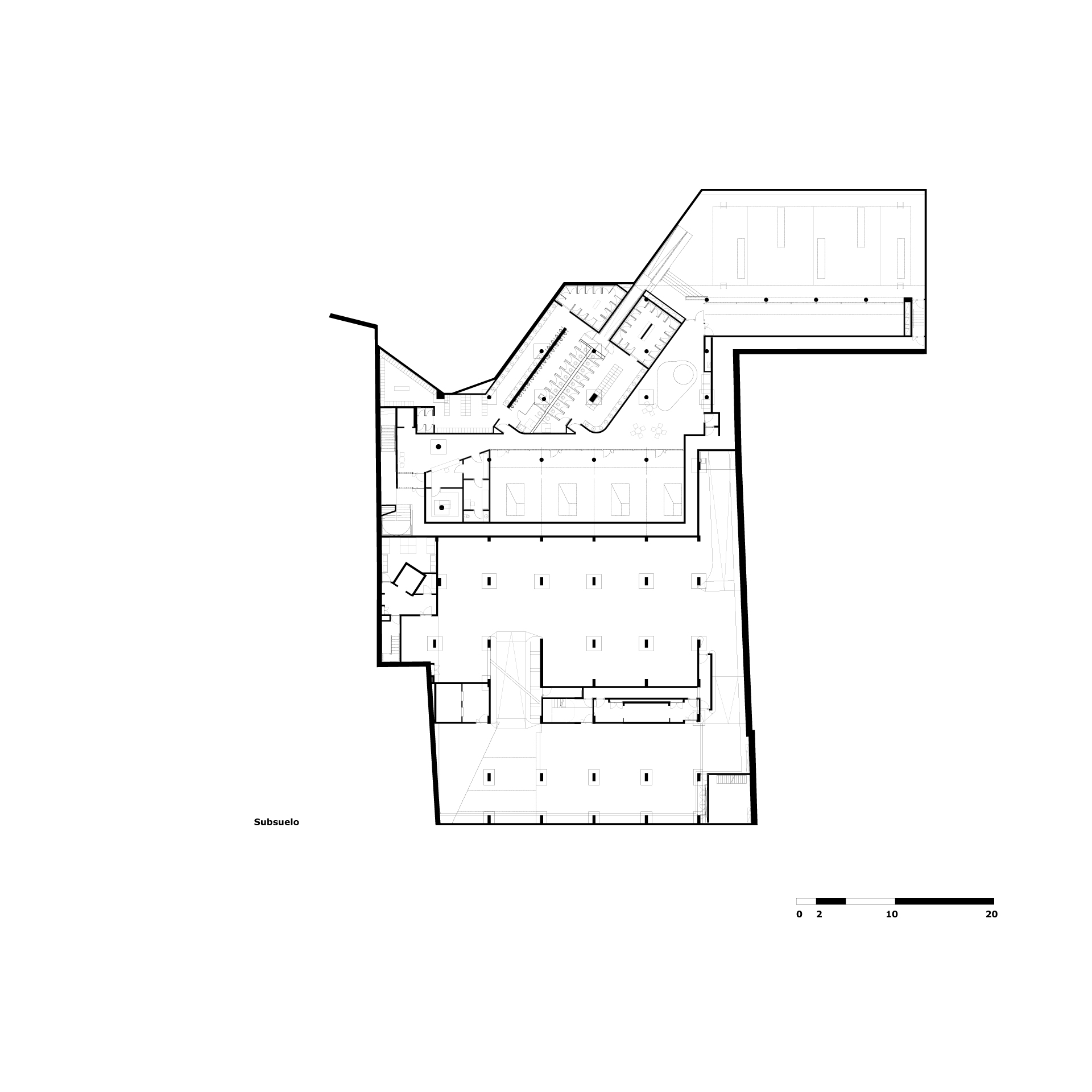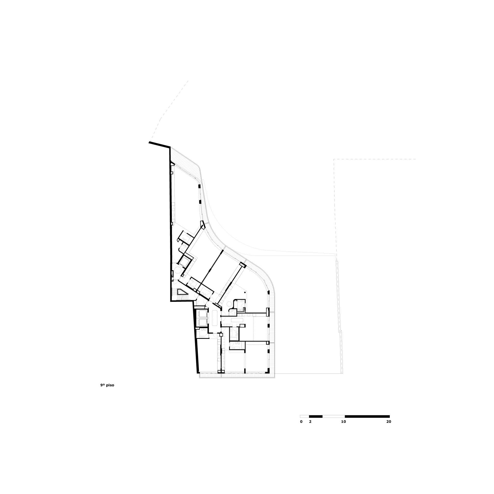 Palacio Paz XXI introduces a new mixed program with a construction that reorganizes the built volume of the block, based on a levelling operation that gives a new continuous urban facade to the set of buildings located towards Santa Fe Av., configuring a substantial improvement of the interior landscape. It replaces the sports club, which left party walls in plain view on both sides towards Esmeralda St., where its imposing blind façade collided with the narrowness of the street and did not provide activity or attractive views to public space. The new building faces the street with continuous balconies, which realignes the height of the existing buildings on both sides and models a series of horizontal bands that introduce great continuities between the different fronts of the building, opening the space to air circulation and natural light.