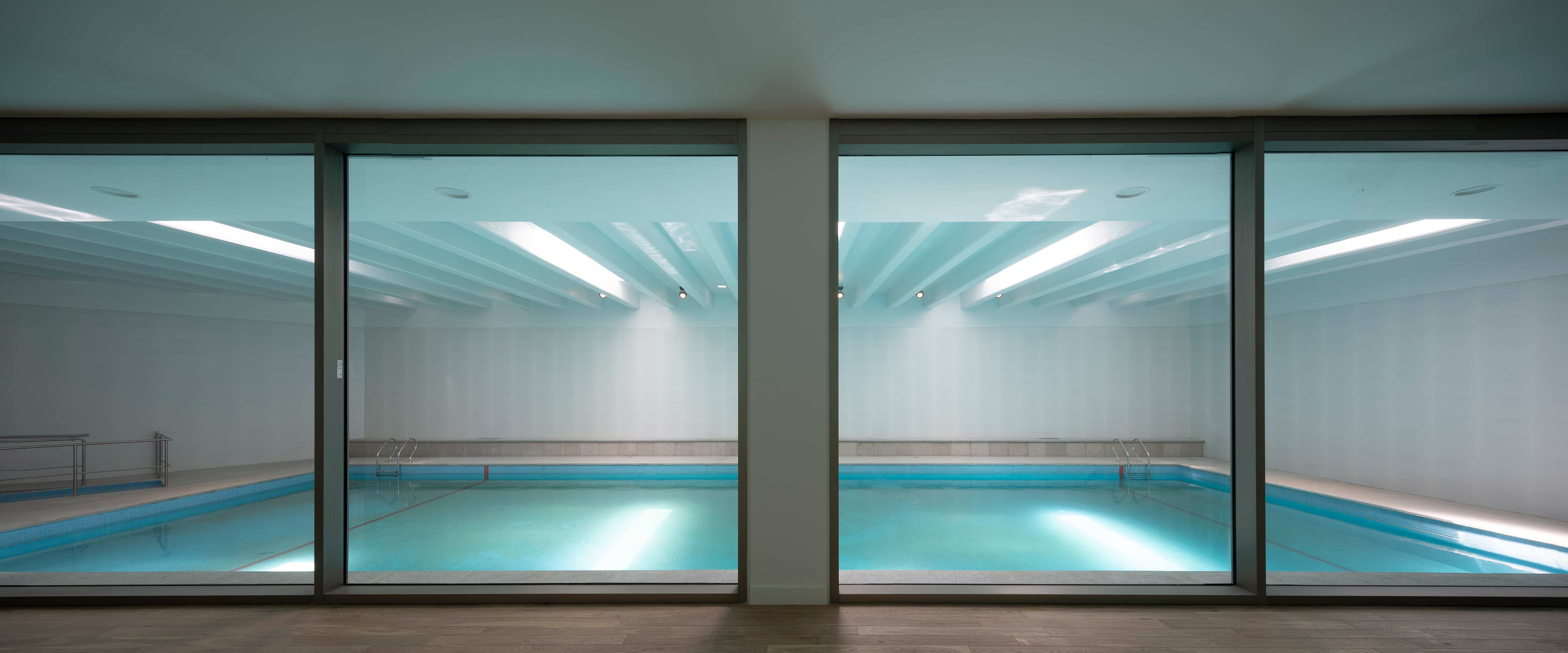 The activities of the old club are renewed and moved to a basement under the garden, illuminated by large skylights, forming a completely new sports centre, with an indoor pool, gyms and shooting range, with independent entrances and access to the new parking accommodated above the Subway tunnel that crosses the plot.