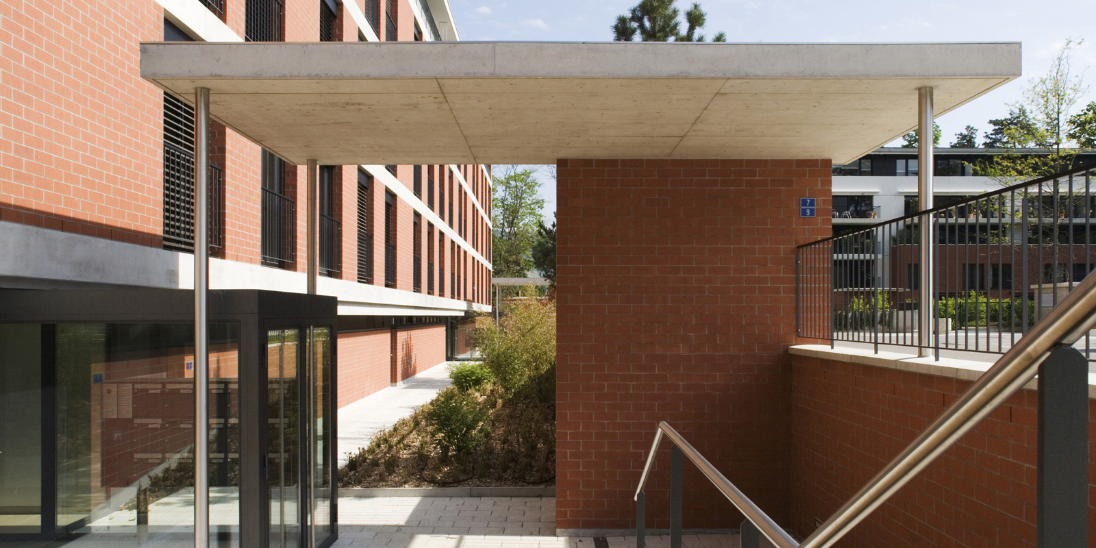 This project consists of a series of buildings, essentially a new neighbourhood, near the old centre of the small town of Rolle situated on the shores of Lake Geneva between the two major urban centres of Geneva and Lausanne. At walking distance from both the centre of the medieval town and the lake, “Les Uttins” consists of three commercial and administrative buildings and four apartment buildings. Presented here is the first apartment complex—“The Oaks.” This building houses 28 apartments with double orientation, located in a luxurious park and offering views onto the lake. The shape of the building is the result of the combination of a series of long horizontal planes forming terraces and balconies facing the park with three compact volumes containing the apartments. The building thus appears through a double typology. From the road, the three volumes stand out and suggest a medium-scale housing typology, whilst from the park, the building presents itself as a more unified whole—the continuity of the terraces is evocative of a bar building—blending into the landscape. This composition is laid onto a lower ground floor housing the access halls to each block, as well as corresponding parking spaces and cellars. This level runs below the housing blocks like a continuous foundation slate, pierced only by two little patios inserted between the volumes, allowing for natural light to illuminate the entrance halls and parking spaces. The two entrances to the complex are located at this lower level, at both ends of the building. The lateral positioning of the entries permitted the creation of private gardens for all apartments on the upper ground level.