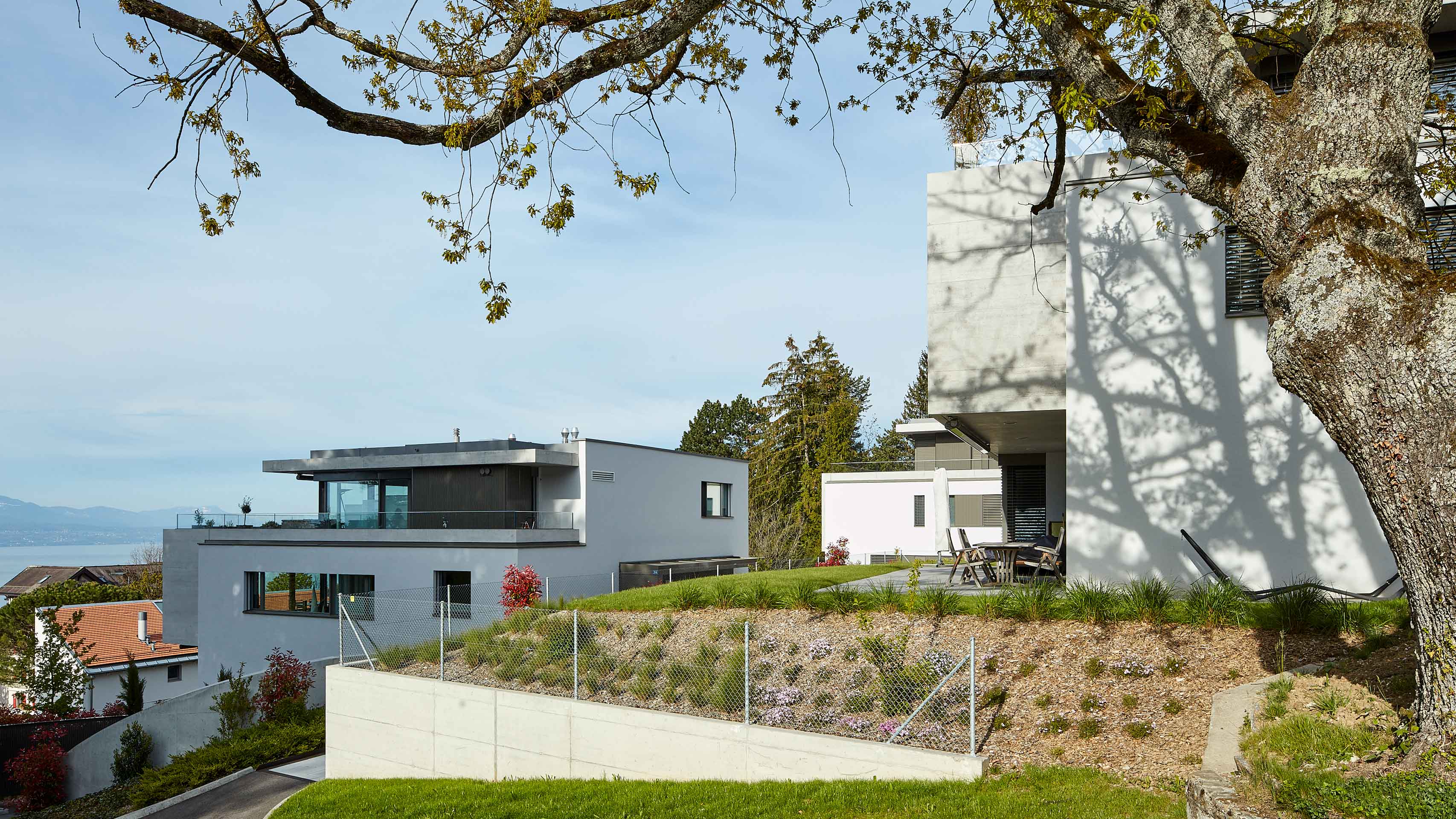 Este conjunto, localizado en la región de Pully, se compone de 3 viviendas urbanas compuestas de 3 apartamentos cada una, uno por piso. Los apartamentos tipo de 184 m2 cuentan con 5½ piezas, con 4 habitaciones y una habitación escritorio conectada al salón principal. Las superficies externas varían desde 25 m2 para las logias de piso, hasta 70 m2 para terrazas en la planta baja, sin mencionar el jardín que las rodea. Para los apartamentos del ático, el programa básico ofrece un apartamento de 3½ habitaciones de 104 m2, con dos dormitorios en suite y una zona de día abierta en una terraza de 100 m2. Gracias a la disposición tipológica, todos los espacios se abren discretamente hacia el contexto y generosamente hacia el gran paisaje y el lago. Los tres edificios están conectados en el sótano por un estacionamiento de 18 plazas, un espacio generoso puesto en valor por una entrada de luz natural que contribuye a la calidad del conjunto. El espacio de transición entre el estacionamiento y los apartamentos incorpora al programa las bodegas y las salas técnicas.