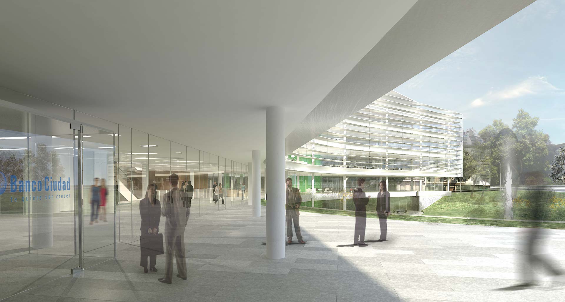 Este concurso público se centró en la elaboración del Proyecto y la Construcción de un edificio de oficinas para la nueva Sede Corporativa para Banco Ciudad. El impacto más importante de la propuesta se concentra en 2 temáticas relacionadas: la conformación del frente urbano del parque, instalando un gran edificio institucional icónico, y la consecuencia de la intervención que es la densificación del barrio llevando allí un gran flujo de personas que dinamiza la zona. El proyecto propone concentrar la totalidad del programa de oficinas en un volumen único, compacto y de perímetro libre. De esto resulta, entre otras ventajas, una óptima relación entre la superficie de espacios iluminados naturalmente y la superficie de fachadas o, dicho de otra manera, una ecuación ideal entre confort y costos, tanto de construcción del edificio como de su explotación y mantenimiento.