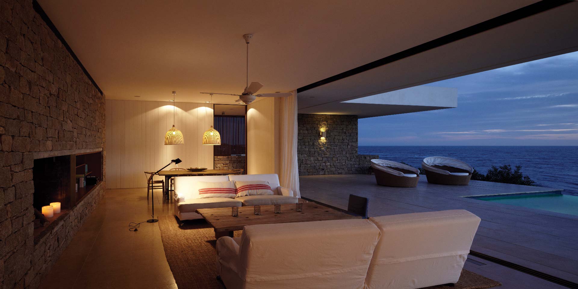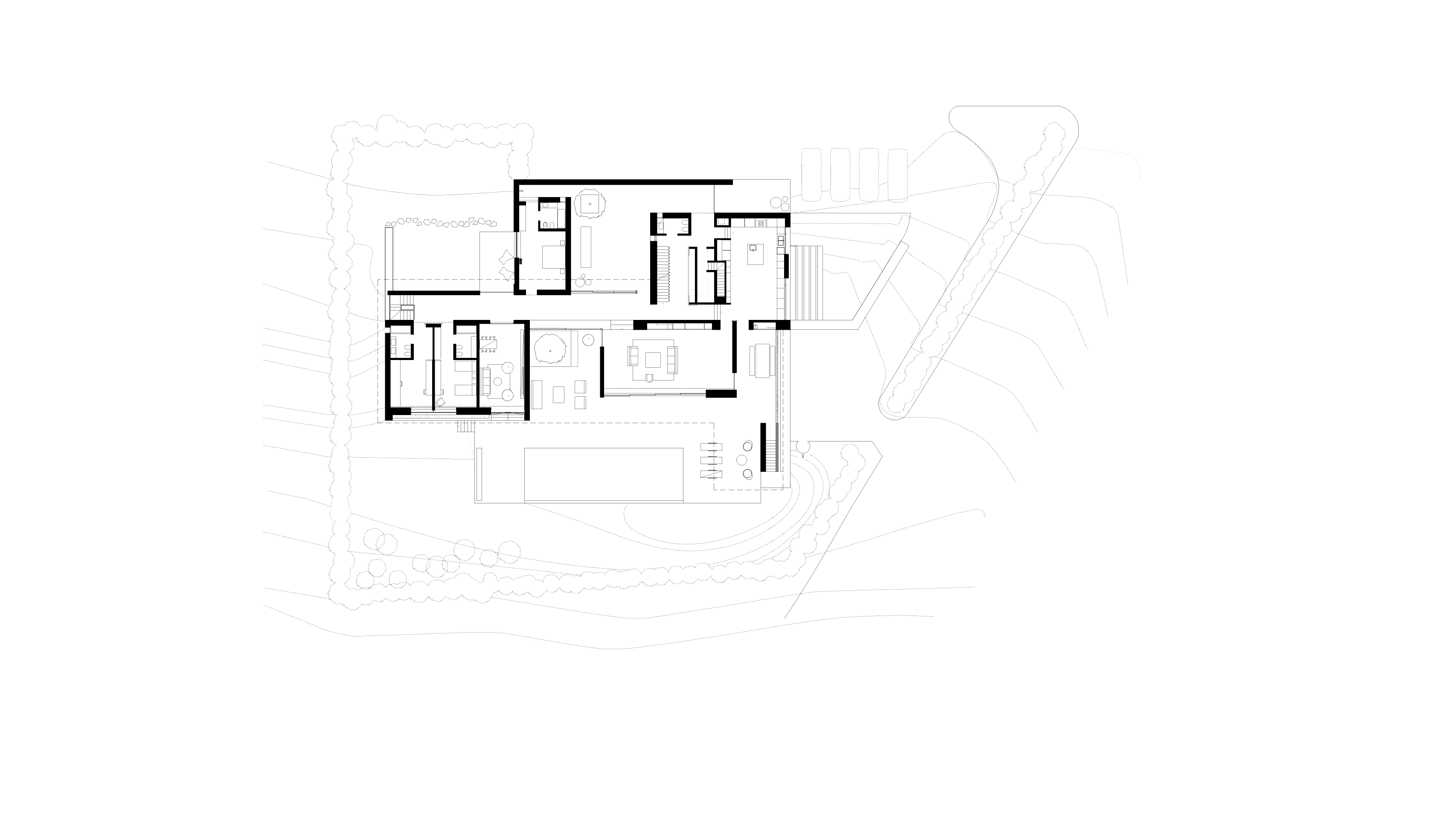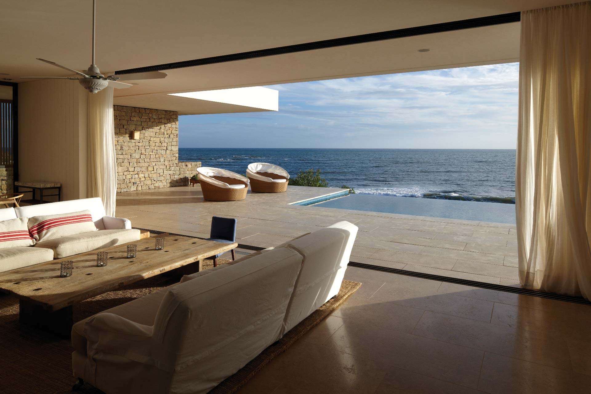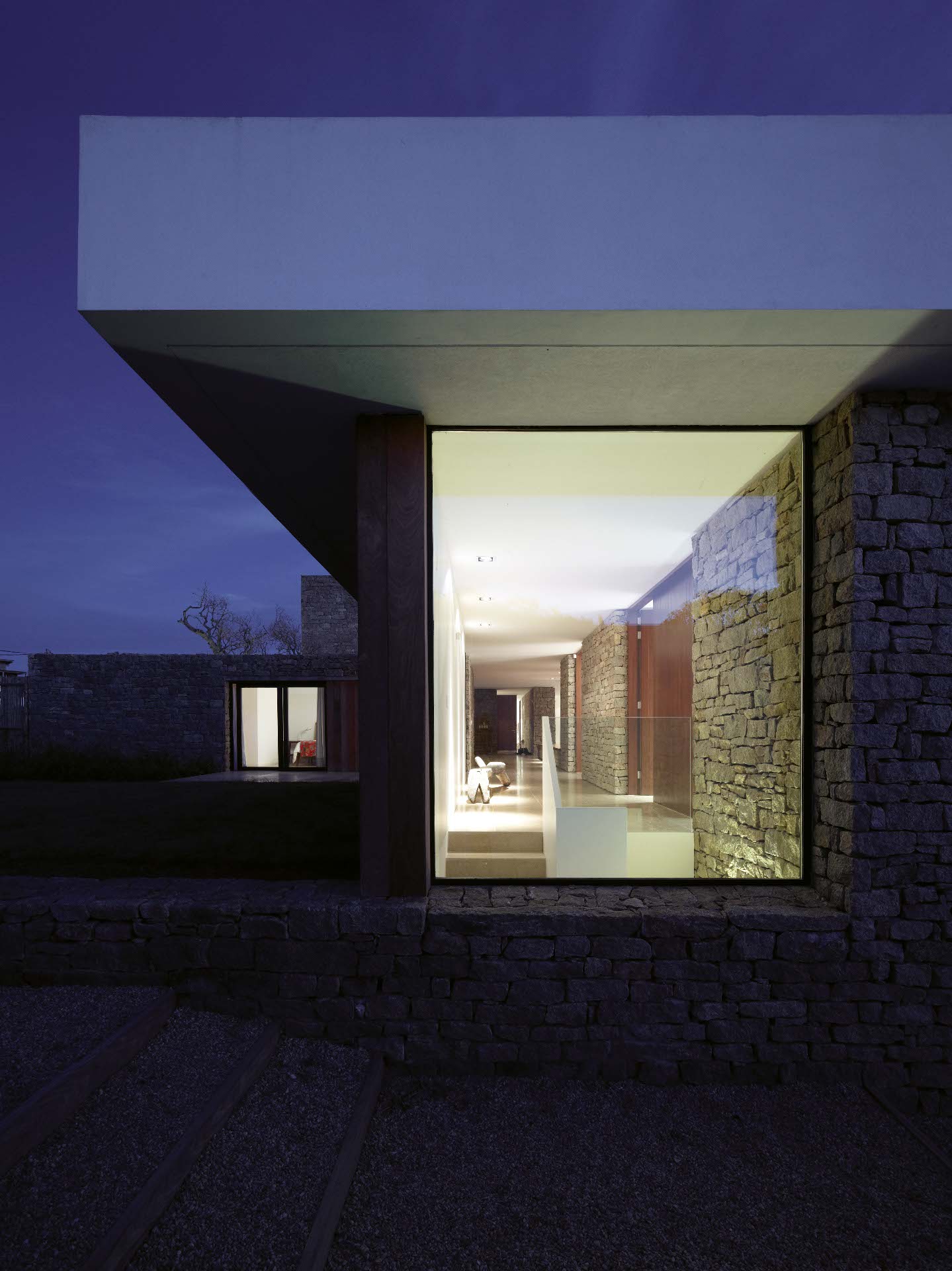 Esta vivienda familiar de vacaciones, con uso continuo en verano y puntual en invierno, se ubica junto al mar en un solar privilegiado sobre la playa mansa de José Ignacio. El sitio presenta una pendiente moderada hacia el mar y las vistas principales en dirección oeste hacia la puesta del sol. Por uno de sus laterales, hacia el sur, se encuentra una de las calles de acceso a la playa muy transitada en verano. El programa se desarrolla casi totalmente en una sola planta que se va escalonando levemente siguiendo la pendiente natural del terreno. La casa está formada por una serie de pabellones de muros de piedra, separados por patios y cubiertos por una gran losa vegetada. Este techo jardín es un potente gesto horizontal que relaciona la casa con el atardecer del horizonte marino. Ambos elementos definen el área social de la casa como una secuencia de espacios exteriores, interiores y semi-cubiertos que se relacionan entre sí creando diversas condiciones de uso adaptadas a las variables climáticas del lugar. Los grandes ventanales corredizos permiten vivir la casa en verano como un gran espacio de sombra exterior. La casa se consolida en el alzado sur, ubicando allí las funciones de servicio, buscando protegerse del viento y de la calle de acceso público a la playa. La torre en la esquina define su discreta presencia en el paisaje del pueblo de José Ignacio.