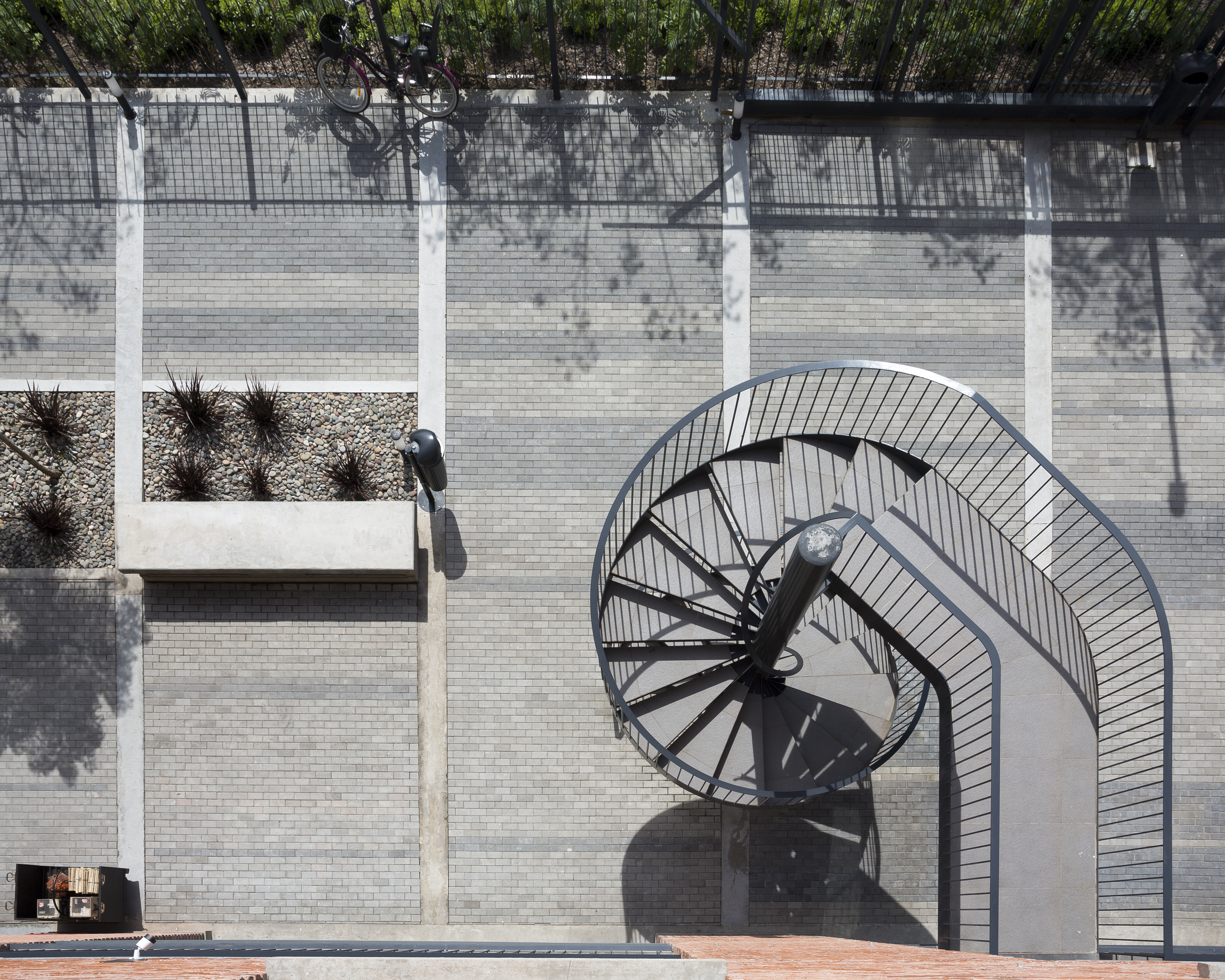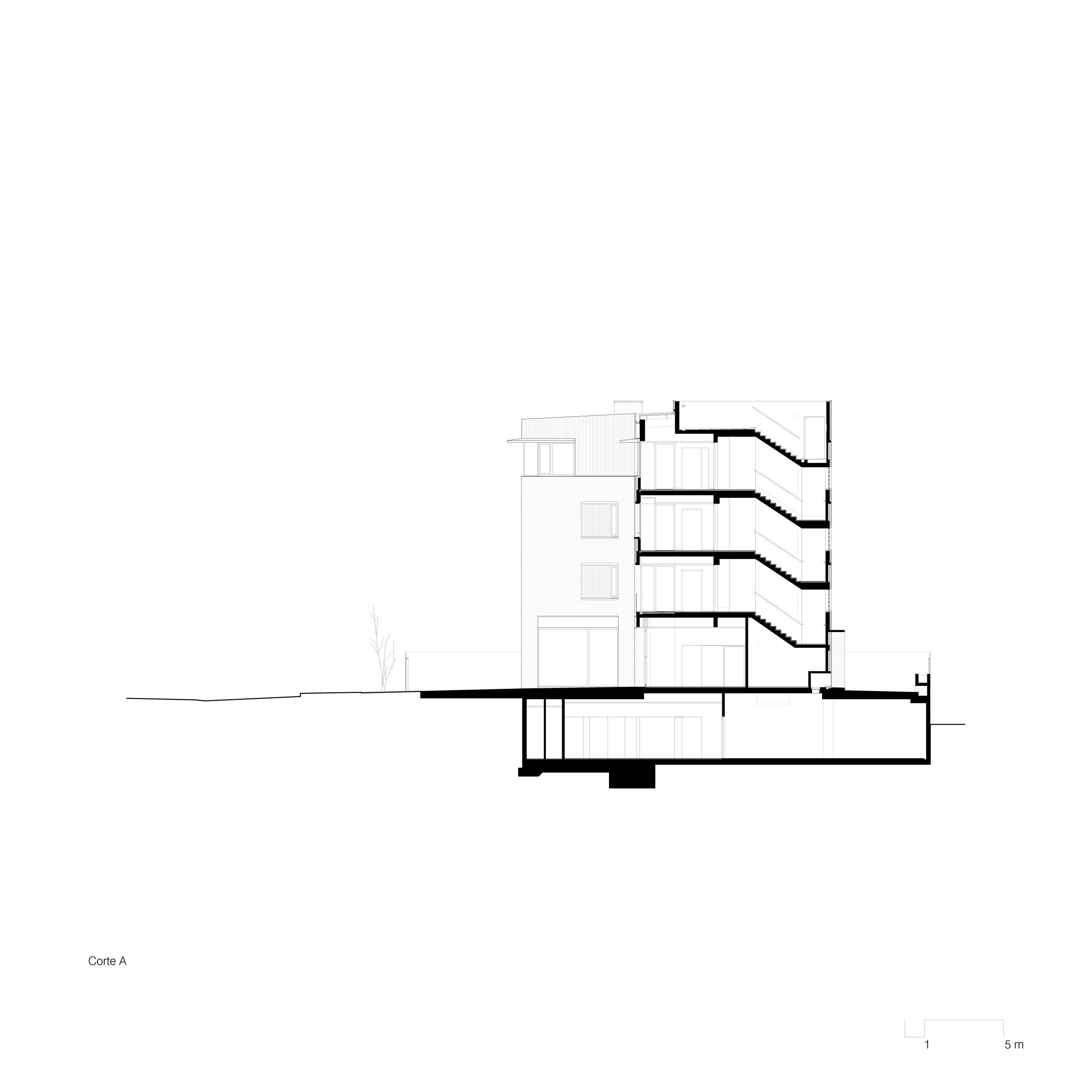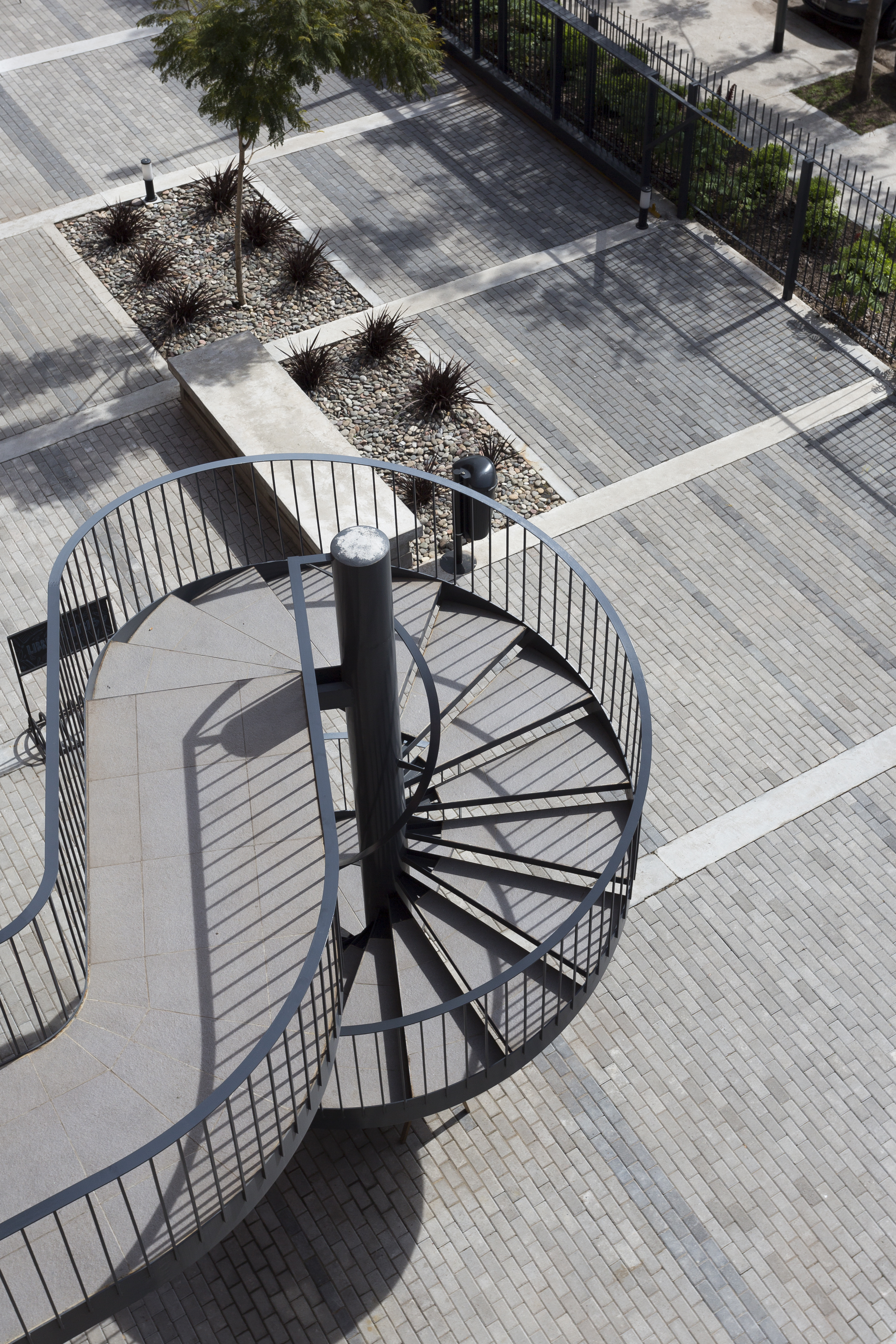 El proyecto desarrolla una investigación sobre formas de tecnificar la estructura, integrándola por medio de parasoles, mallas metálicas y ajustes de composición-profundidad entre los planos, para volver más eficiente el comportamiento energético de la totalidad del edificio. Este sistema, que se desarrolla desde los niveles inferiores a los superiores, ajusta el distanciamiento de los cerramientos en cada caso, desplegando una serie de variaciones de los espacios intermedios propicias para cada situación (acceso en planta baja, trabajo en planta tipo, esparcimiento en terrazas).
