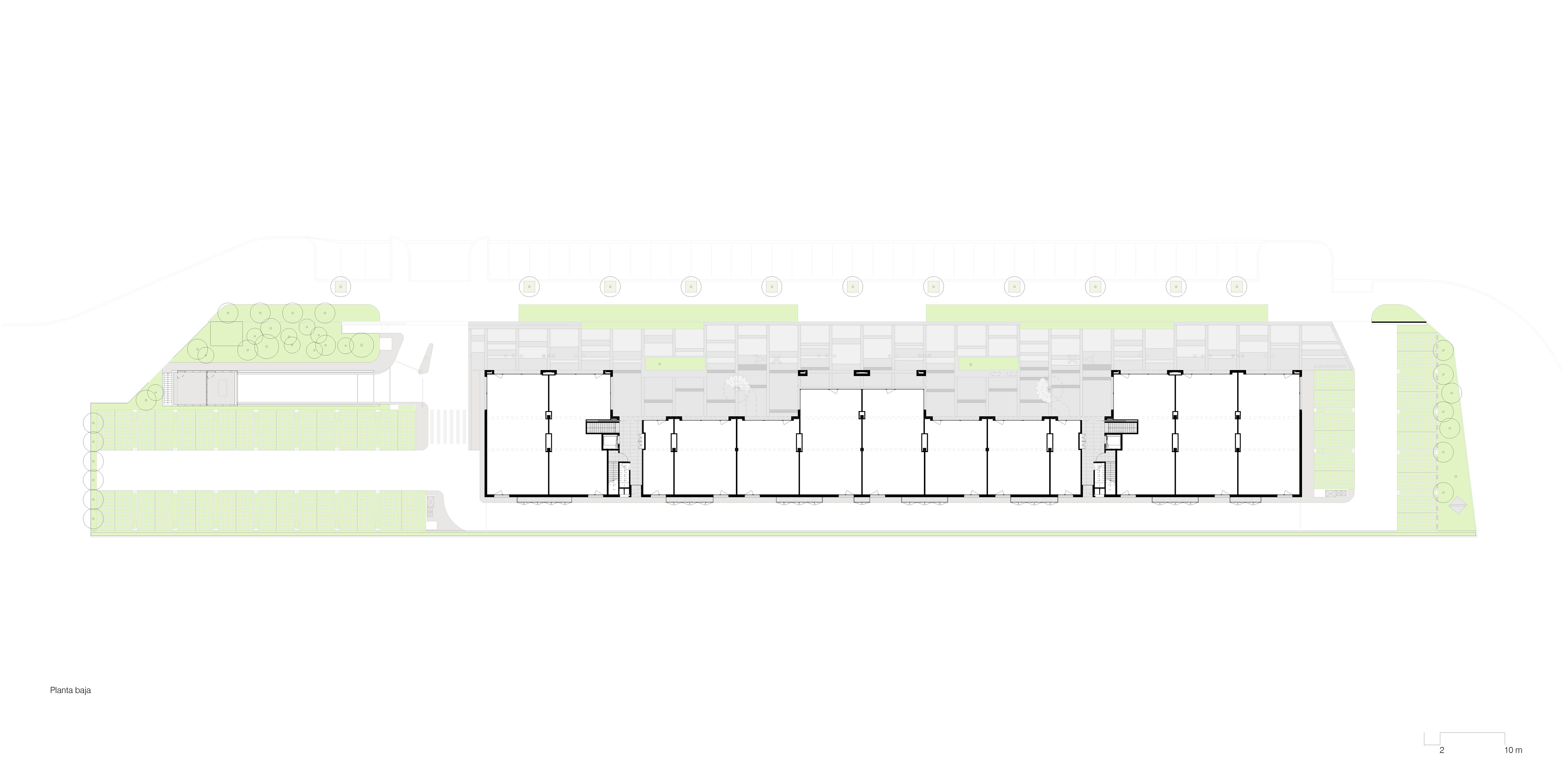 Buena Vista Office Park está ubicado en un nodo estratégico de conexión vial en la ruta Panamericana, a medio camino entre la Capital Federal, Pilar y Nordelta. El masterplan desarrollado por RDR arquitectos propone integrar una decena de terrenos en un conjunto edilicio vinculado con una calle central que promueva el uso común de las plantas bajas y los espacios semipúblicos. Plantas bajas comerciales y administrativas se vinculan con amplias veredas y espacios verdes, incluyendo estacionamientos forestados que completan el espíritu del sitio. Esta estrategia intenta morigerar el empobrecimiento de los espacios urbanos debido a la segregación de usos, muy común en estos desarrollos suburbanos surgidos de las respuestas concretas a criterios de seguridad.