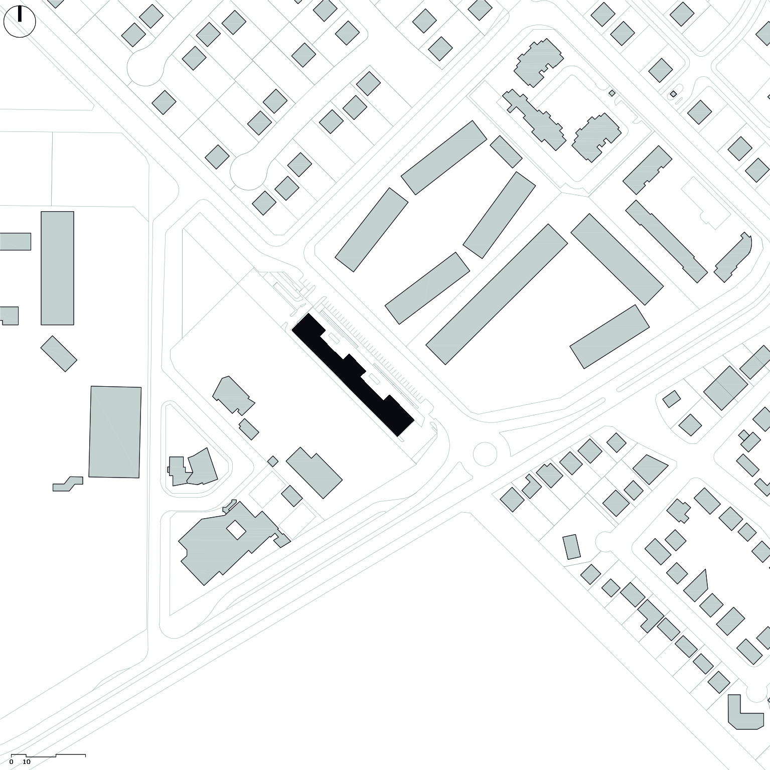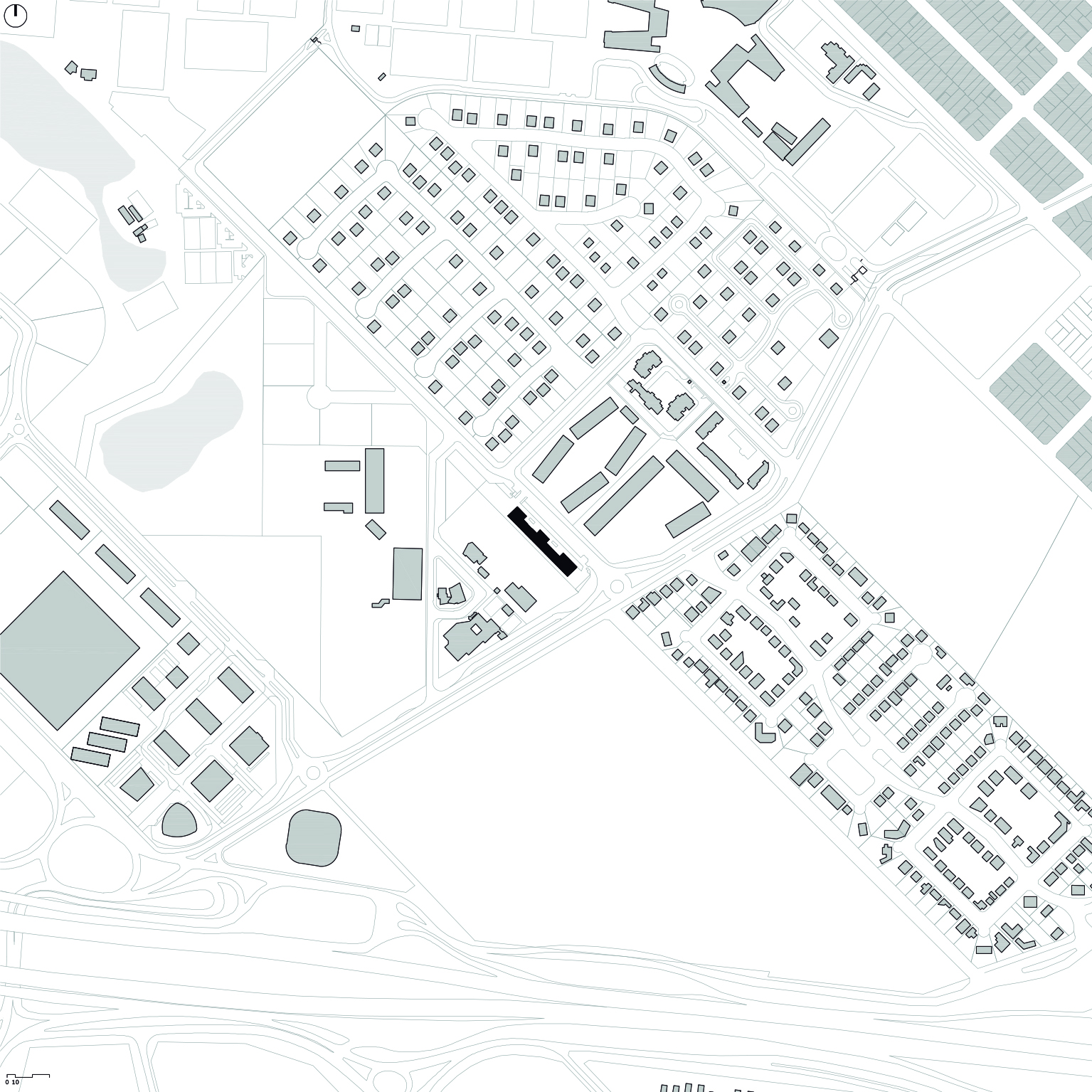 La obra propone abordar la estrategia material con una visión responsable de los recursos energéticos y técnicos, mediante un sistema capaz de integrar en una unidad compleja a espacio, estructura y envolvente. En un área que aparece dominada por extensos vacíos, el edificio se presenta como un objeto urbano que se disgrega en elementos constructivos más próximos a la escala humana, con el fin de otorgar carácter y calidad urbana al paisaje que está construyendo.