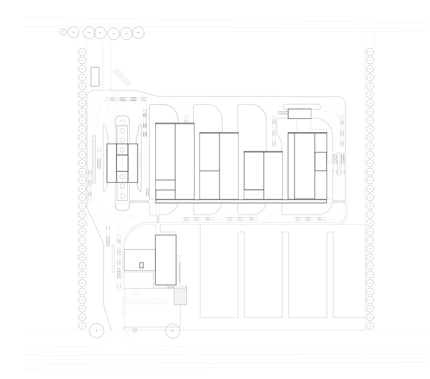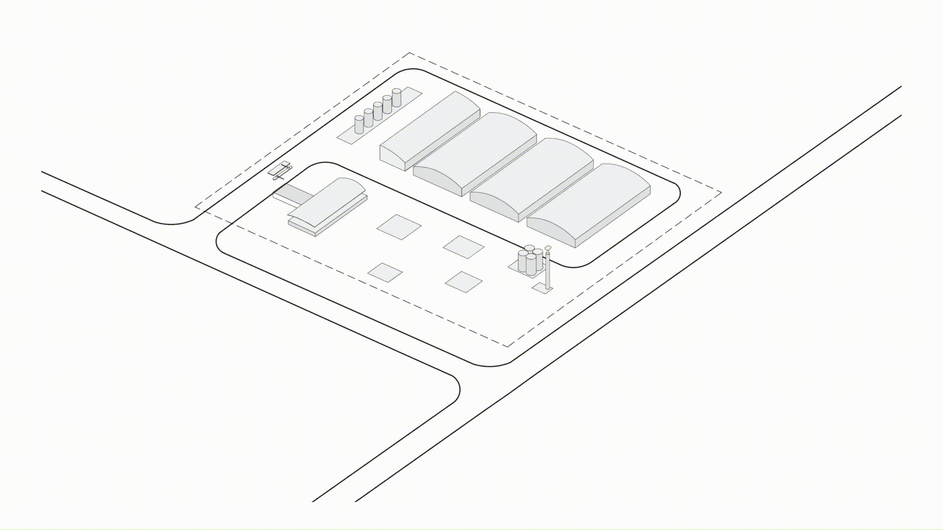 Esta organización de los elementos permite al masterplan prototípico responder fácilmente a los condicionantes de evolución del programa y terreno manteniendo la identidad de los sitios YPF agro.