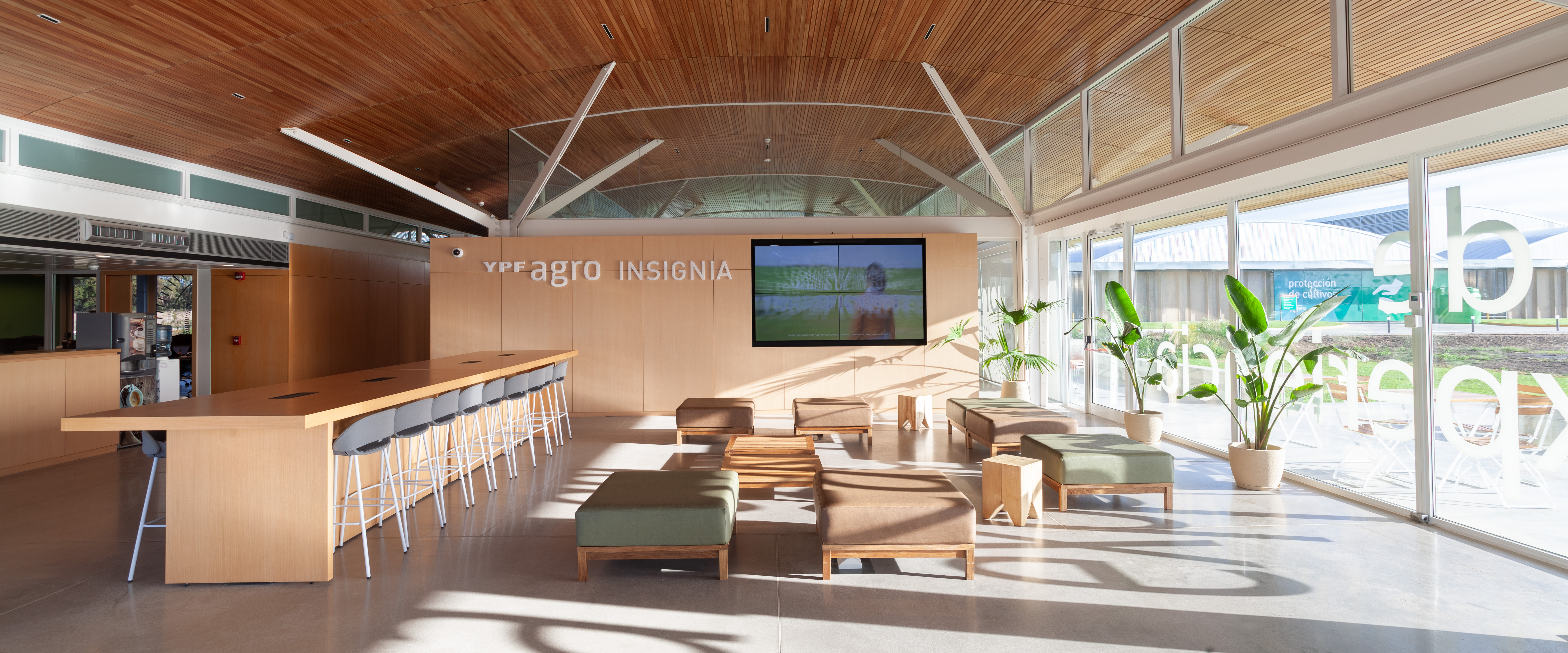 El gran desafío de este proyecto prototípico consiste en dar la mejor respuesta técnica y funcional al programa de necesidades, ofrecer una gran versatilidad y flexibilidad, y al mismo tiempo lograr que el lenguaje arquitectónico comunique a la comunidad agropecuaria la identidad y los valores del programa Insignia YPF agro.