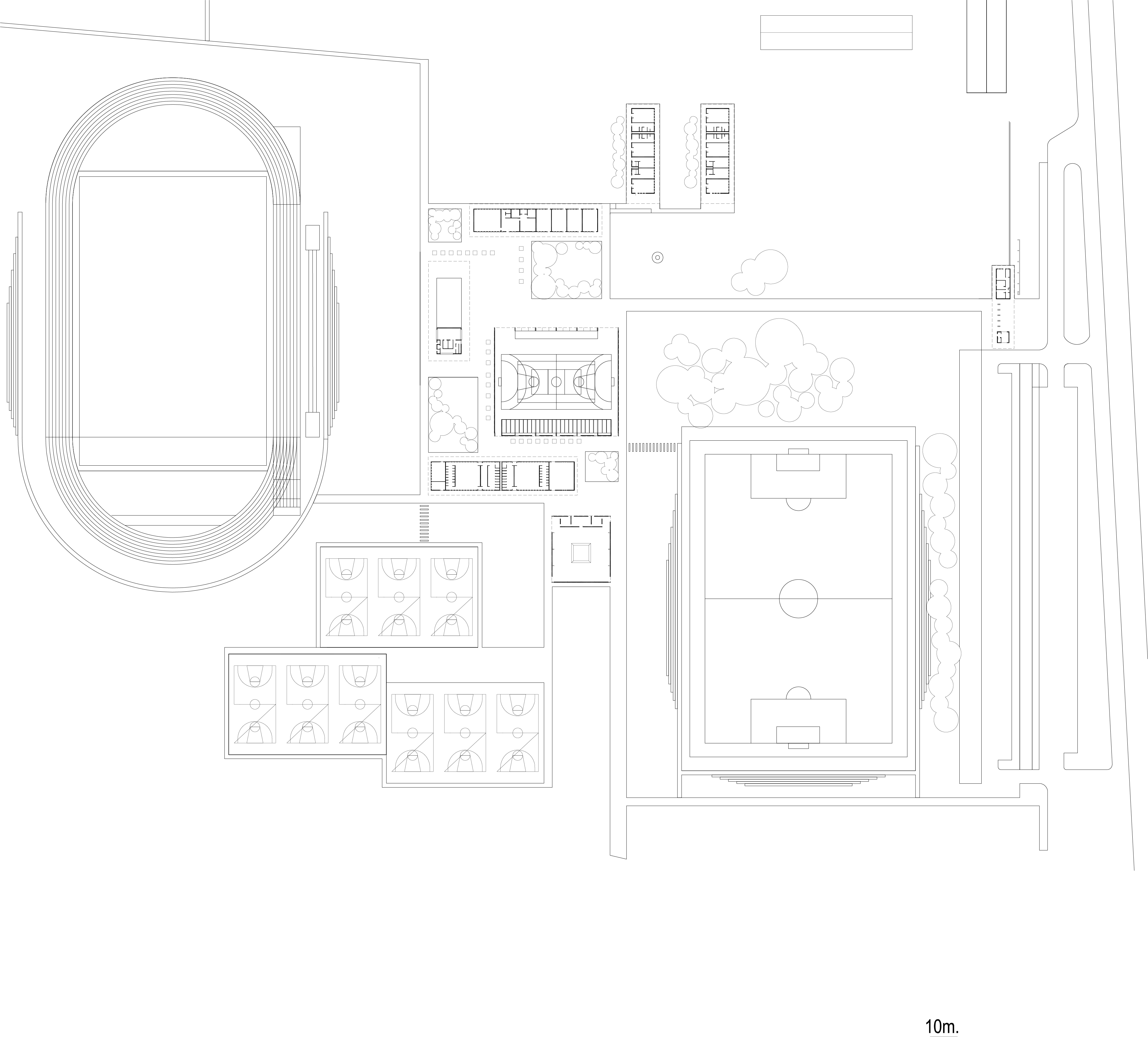 El proyecto piloto para el Centro Olímpico de Desarrollo Deportivo y Educacional está ubicado en Lusaka, Zambia, en el área entre el Estadio Independence y el nuevo terreno perteneciente a la FIFA /FAZ (Football Association of Zambia). Está ubicado al norte de la ciudad de Lusaka, al este del Cementerio Chingwere. El Centro Olímpico de Desarrollo Deportivo y Educacional incluye canchas deportivas exteriores (fútbol, atletismo, básquet/tenis/hándbol/hockey), un centro polideportivo interior (para hándbol, vóley y básquet, y que puede dividirse en 3 sectores más pequeños para sesiones de práctica), un Hall de Boxeo y espacios soporte educativos (aulas, biblioteca/sala de internet), oficinas administrativas, y espacios general de soporte como vestuarios, baños públicos, cocina, depósitos, etc. Los edificios principales están ubicados de manera central y organizados alrededor de una plaza exterior, que funciona tanto como extensión del espacio polideportivo como de espacio comedor. Todos los edificios (exceptuando el Polideportivo y el Hall de Boxeo) están diseñados como volúmenes de mampuestos ubicados debajo de estructuras de acero (portales). En el caso del Polideportivo y del Hall de Boxeo, sus envolventes se encuentran a filo de la estructura (de modo tal que la estructura define el volumen cerrado). Un tanque de agua se ubica a lo largo del camino de acceso principal, elevado dentro de una cáscara de acero formada como una llama olímpica, reforzando la identidad del Centro como parte de la comunidad olímpica.